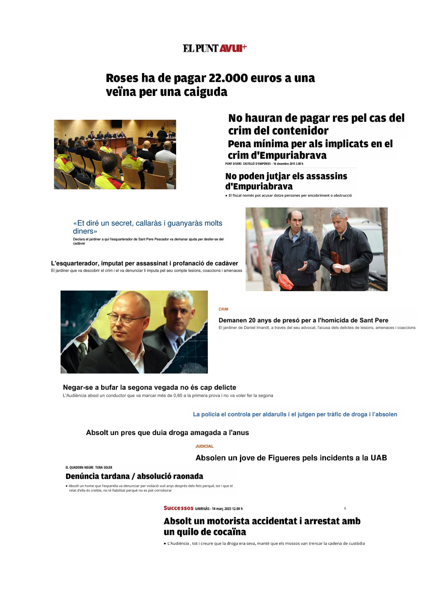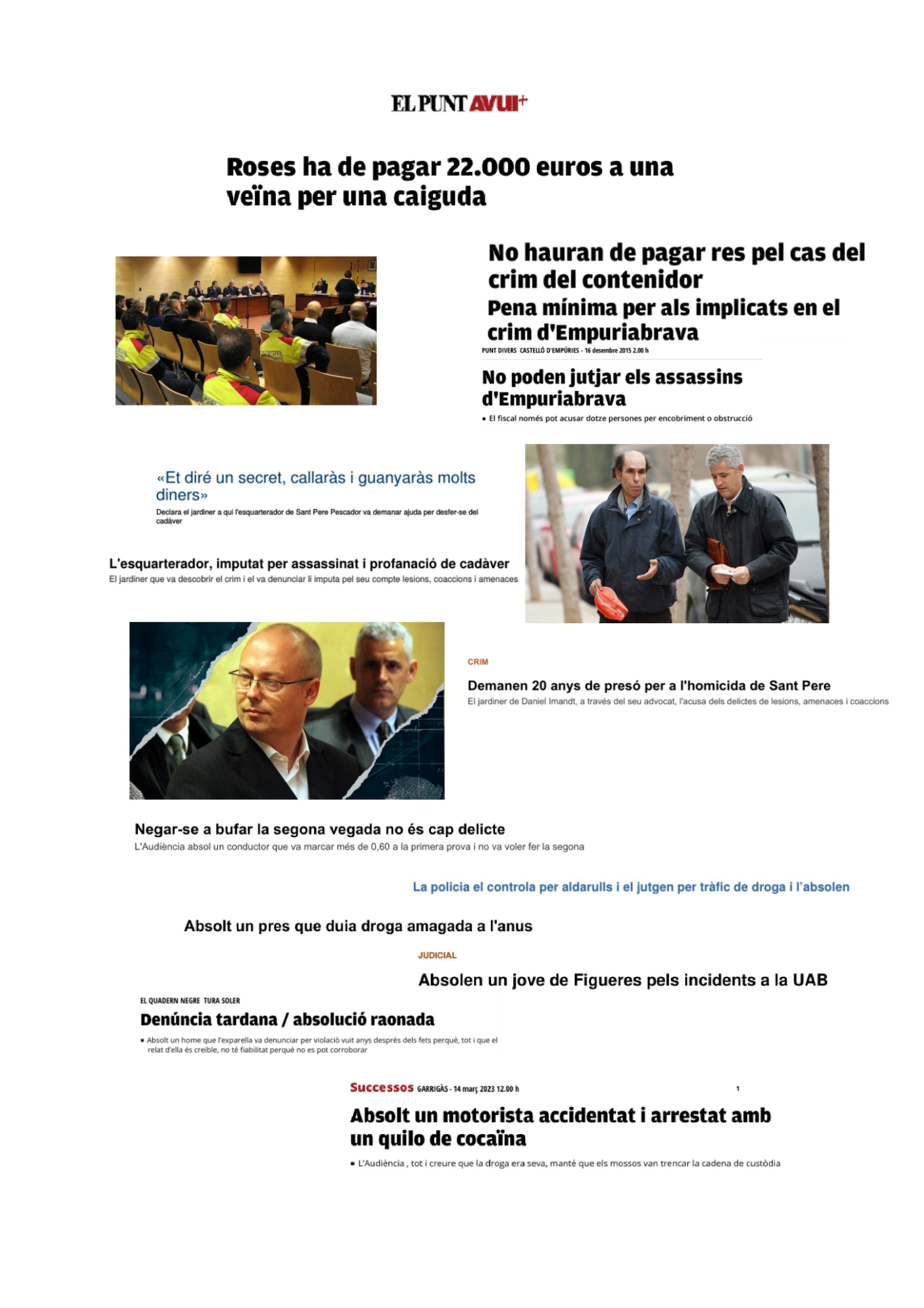 Selección de informaciones aparecidas en medios de comunicación relativas a actuaciones profesionales de los letrados del despacho, con finalidad estrictamente informativa
